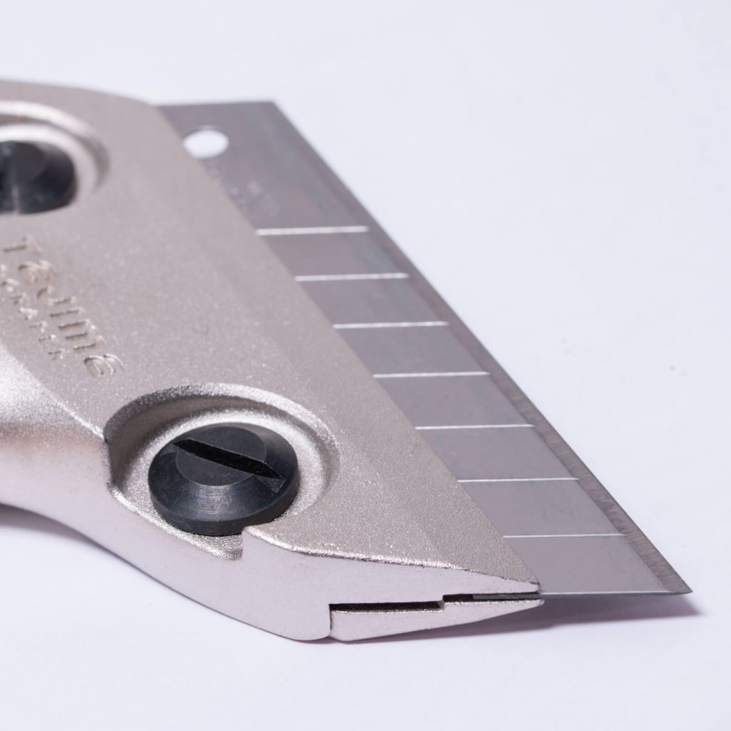 I raschiatori della linea Scrape-Rite firmati Tajima consentono di raschiare imprimendo sullo strumento tutta la propria forza senza rischiare di romperlo. Non si tratta di una caratteristica scontata, la maggior parte dei raschiatori sul mercato è, infatti, piuttosto fragile. L’asta in alluminino rinforzato e la testa in alluminio pressofuso permettono di raschiare con decisione materiali difficili all’interno come all’esterno. A differenza degli altri raschiatori gli Scrape-Rite montano lame da cutter (da 25 mm per il modello da 120 cm e da 18 mm per quelli da 20, 30 e 60 cm); questo ha due vantaggi interessanti: non è necessario avere nella cassetta degli attrezzi lame apposite ed è possibile montarle sia dal lato affilato che da quello piatto ottenendo la massima precisione anche sugli angoli e sui soffitti. Per chiudere la testa dello strumento Tajima ha utilizzato due semplici viti a taglio, facili da svitare e da pulire (con un cutter o una spatola) rendendo il cambio lama semplice e molto veloce.Il manico in gomma dura antiscivolo e la battuta di acciaio senza viti o plastica a segnare la mano garantiscono infine una presa comoda e sicura.