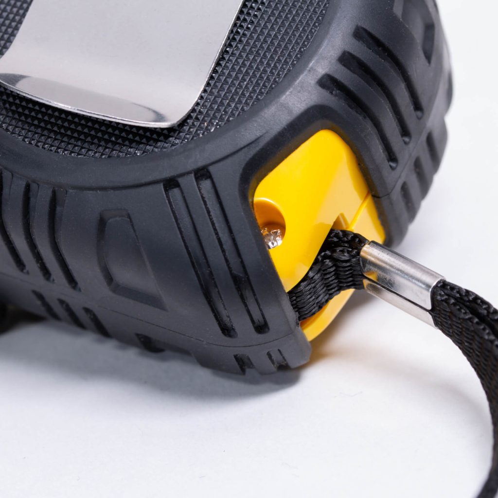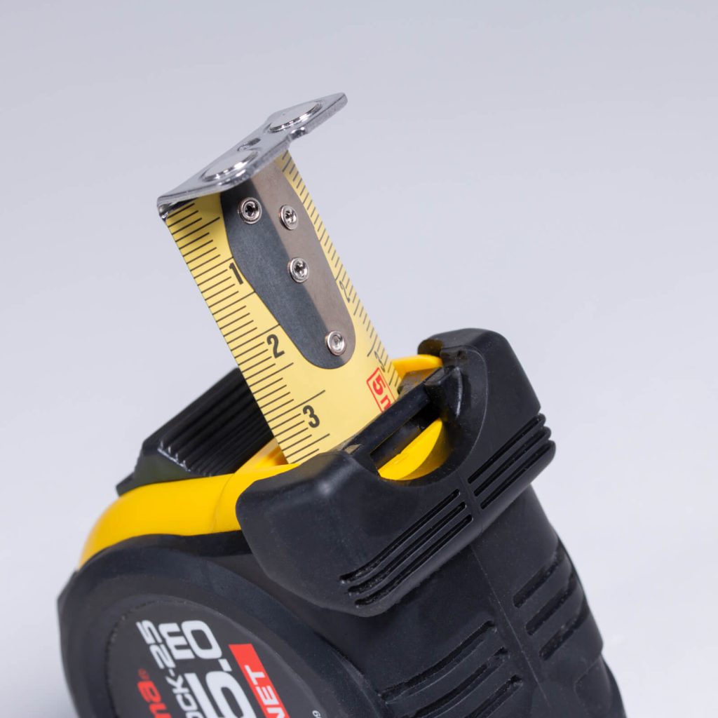 Il G-Lock magnetico Tajima è il flessometro progettato per i professionisti dell’edilizia leggera: il terminale magnetico permette di fissarlo ai montanti per cartongesso e misurare in autonomia sia in orizzontale che in verticale. Il nastro rigido in acciaio da 25 mm arriva fino a 4 metri circa di estensione e la stampa fronte retro facilita le misurazioni in verticale. La cassa corazzata resiste bene ad urti e cadute. I dettagli di progettazione contribuiscono a rendere il G-Lock Tajima uno strumento professionale unico nel suo genere: sotto il flessometro, all’attacco del nastro c’è un piccolo calciolo. Funziona come un vero e proprio ammortizzatore e fa sì che nel chiudere il nastro il terminale e la molla non vengano stressati, perdendo con il tempo tenuta e prestazione. Il posizionamento dei 4 rivetti che fissano il terminale è stato studiato per ridurne il “gioco” e proteggere il nastro garantendo nel tempo la massima precisione sia in battuta che in trazione. La molla all’interno è caricata lasciando il giusto spazio tra una spirale e l’altra e questo permette al nastro di rientrare anche quando è sporco di polvere, stucco o pittura. Basta sbattere leggermente il flessometro per far scendere i residui che sono rimasti attaccati al nastro.